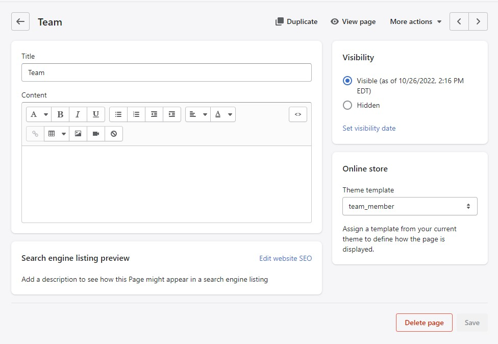 1. From your Shopify admin, go to **Online Store** **->** **Pages.**