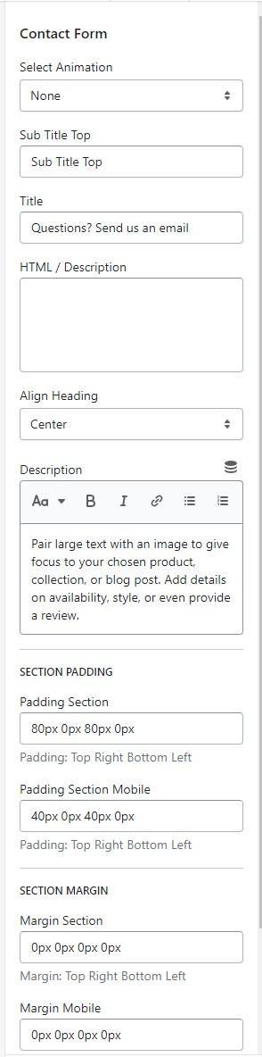 * Text content, Sub Title, Heading, Description, Bottom Description
