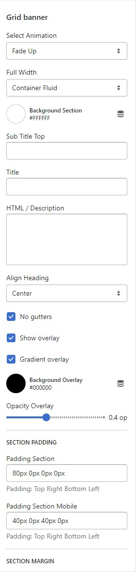 * Text Content > Sub Title, Heading, Heading Size, HTML / Description