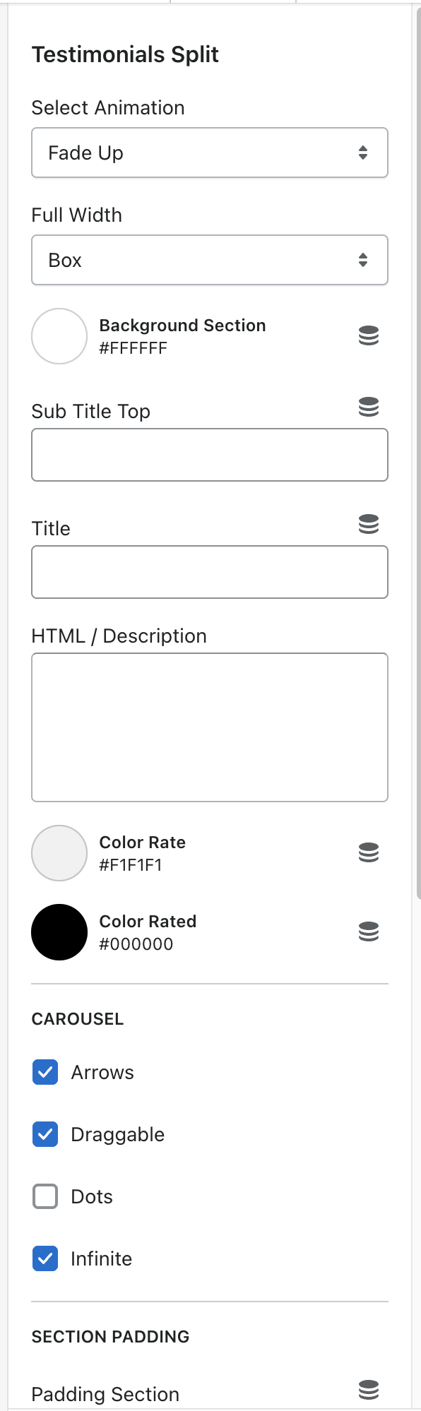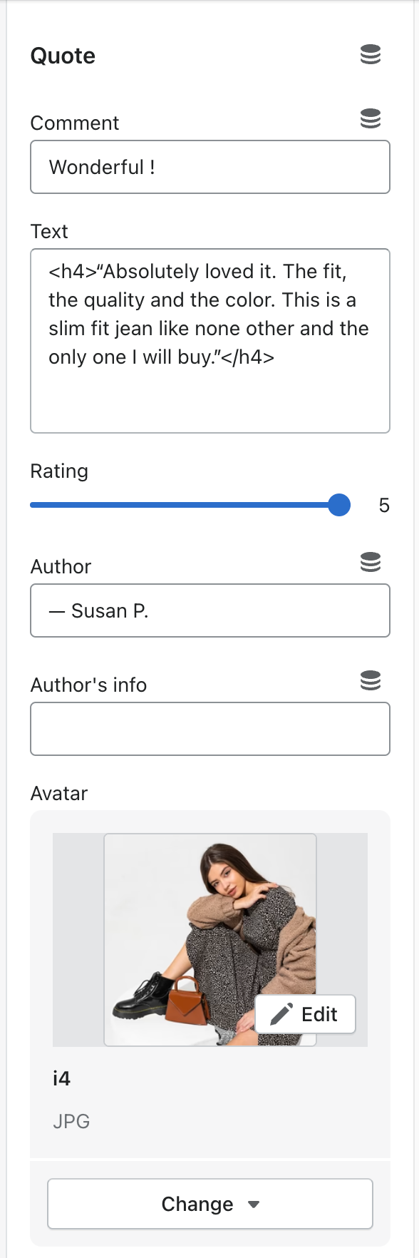 In Testimonials Split Section > Add Quote