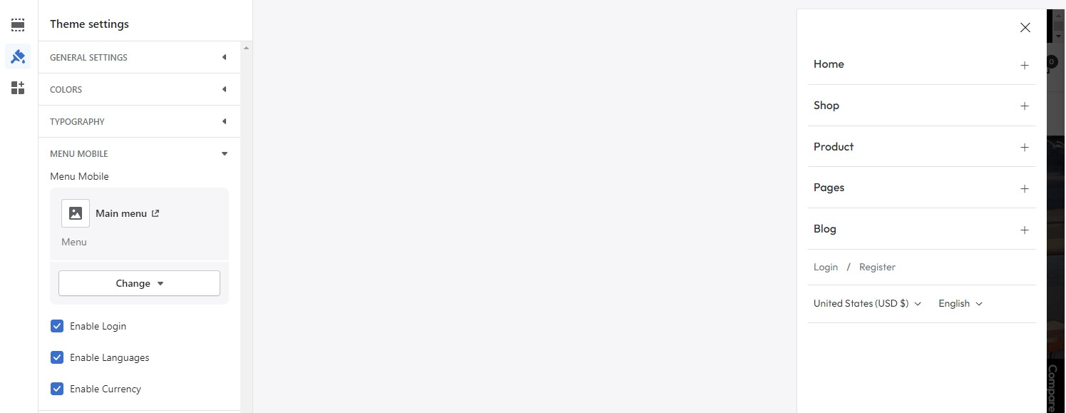 This config help Customer can change the **Menu mobile, Enable login, Enable Languages, Enable Currency**