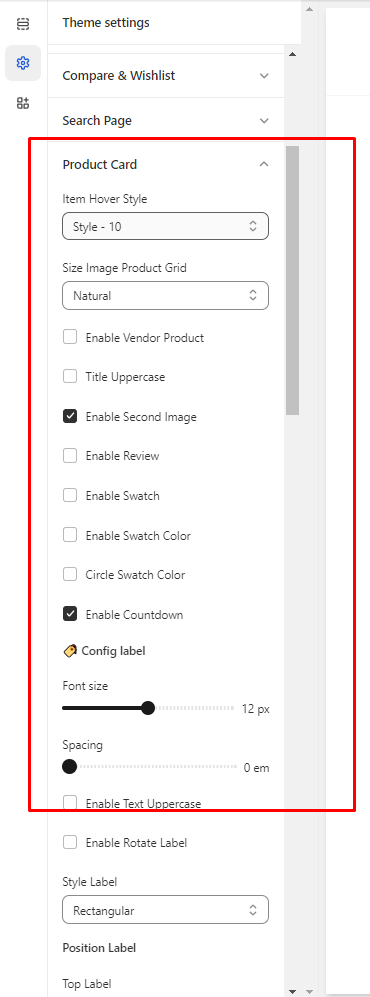 In the theme editor **(Customize) => Theme Settings**, click **Product Card**