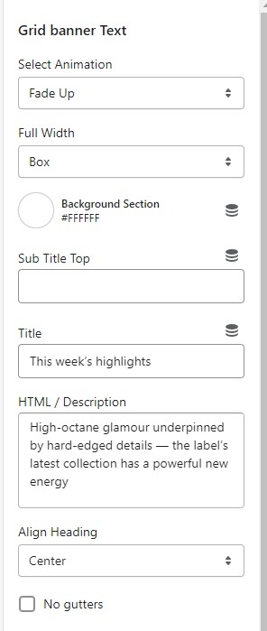 In the theme editor (Customize) => Section, Add Grid banner Text