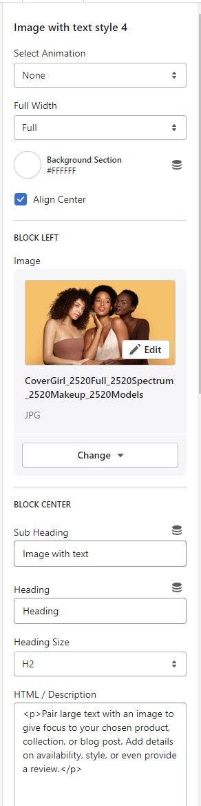 In the theme editor (Customize) => Section, Add Image with text Style 4