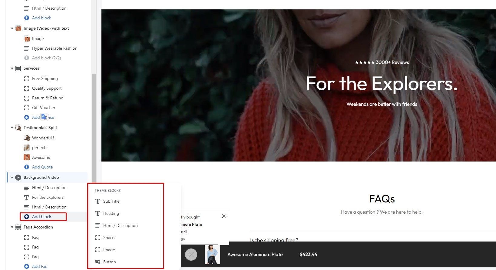 - Link Video => You can upload a video in Theme Settings / File then copy link video