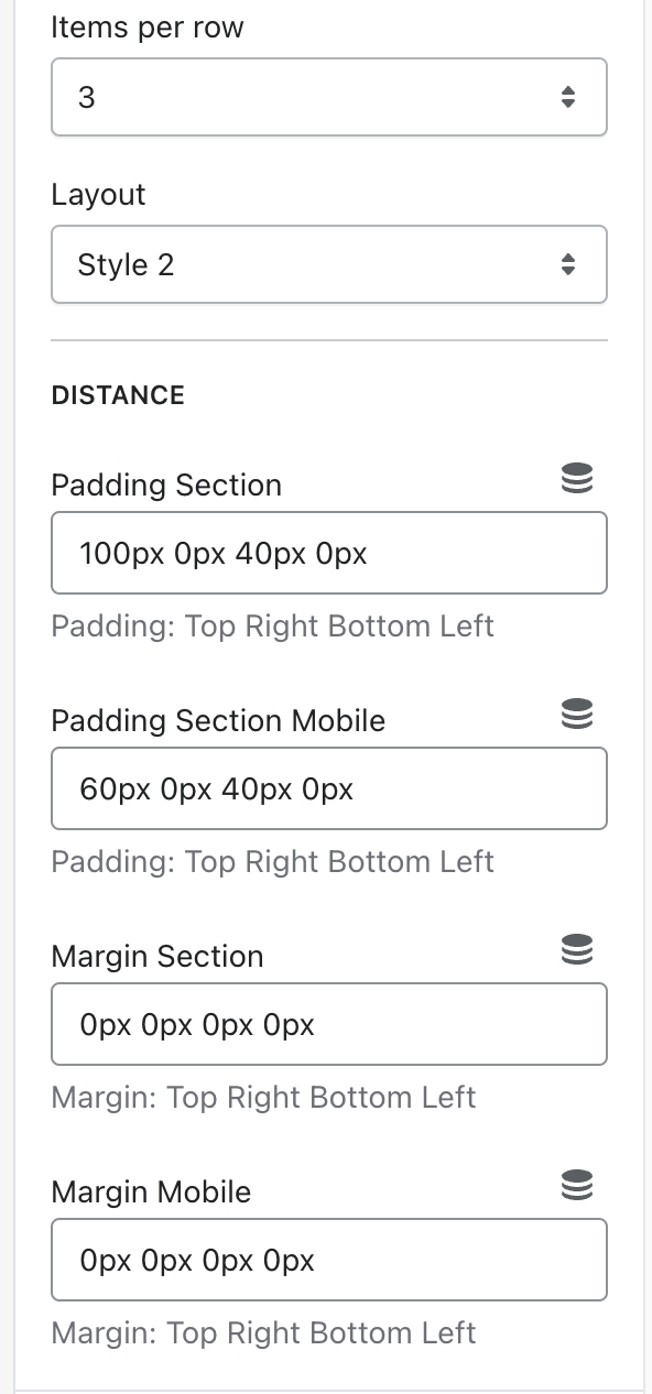 • Items per row