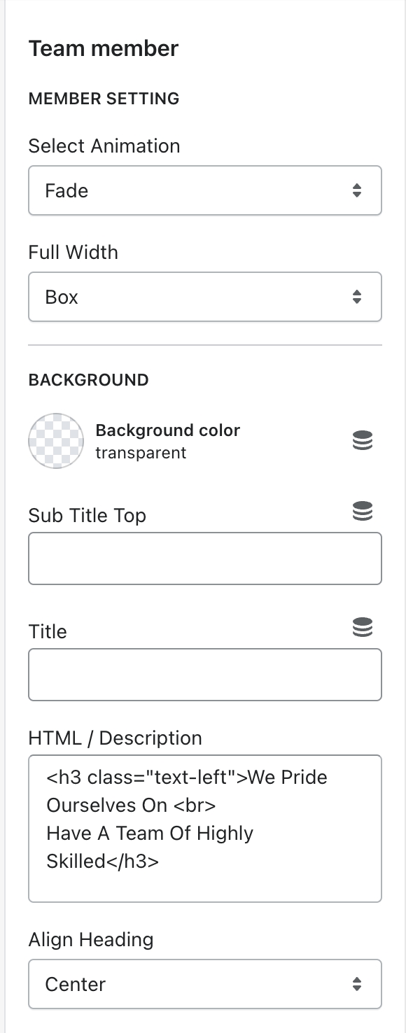 • Text content, Sub Title, Heading, Description
