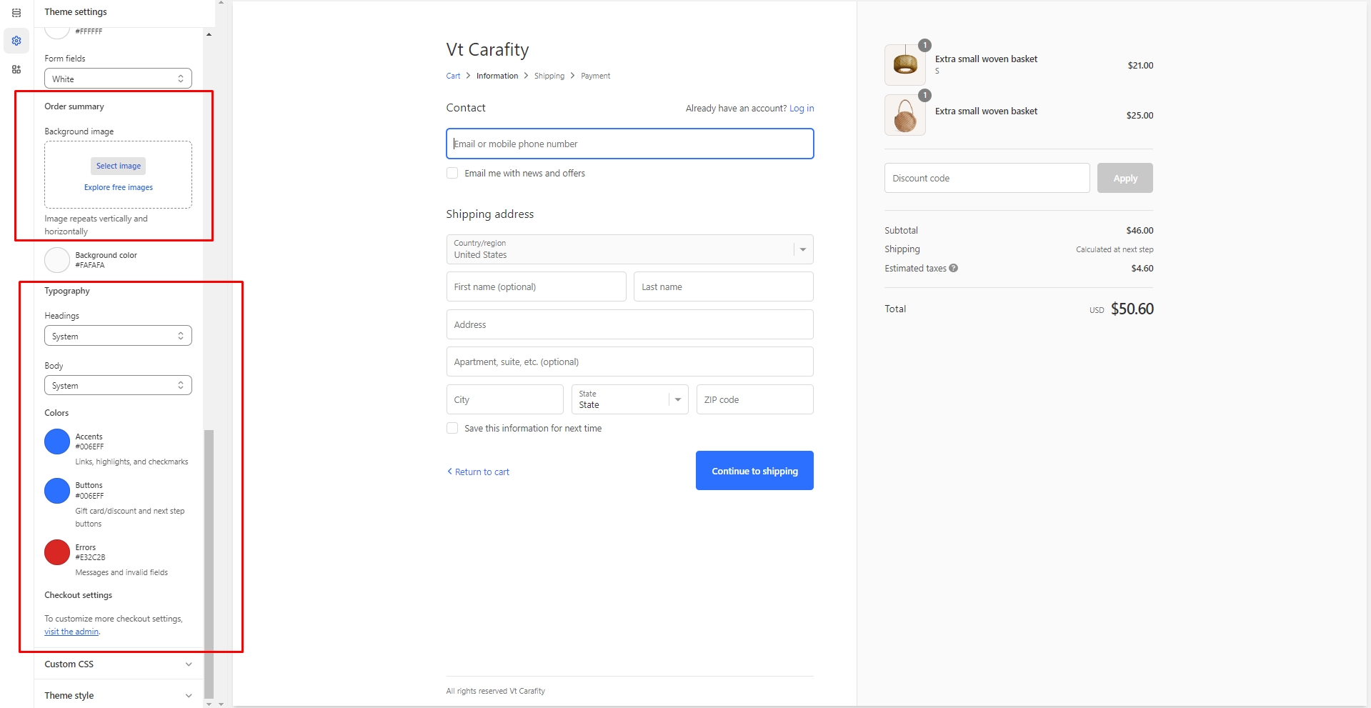 In the theme editor (Customize) => Theme Settings, click Checkout