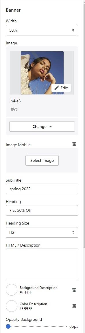 Text Content > Sub Title, Heading, Heading Size, HTML / Description