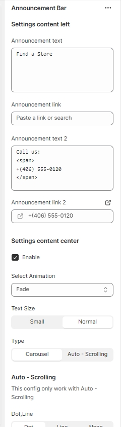 In the theme editor (Customize) => Section, click Announcement Bar