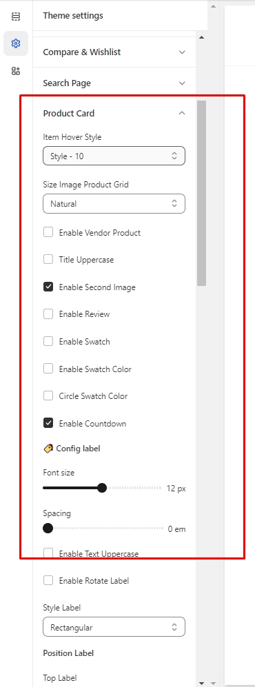Item Hover: These settings help you change the style of item hover and some settings about the item product.