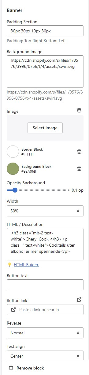 In the theme editor **(Customize) => Section**, click **Banner Footer**