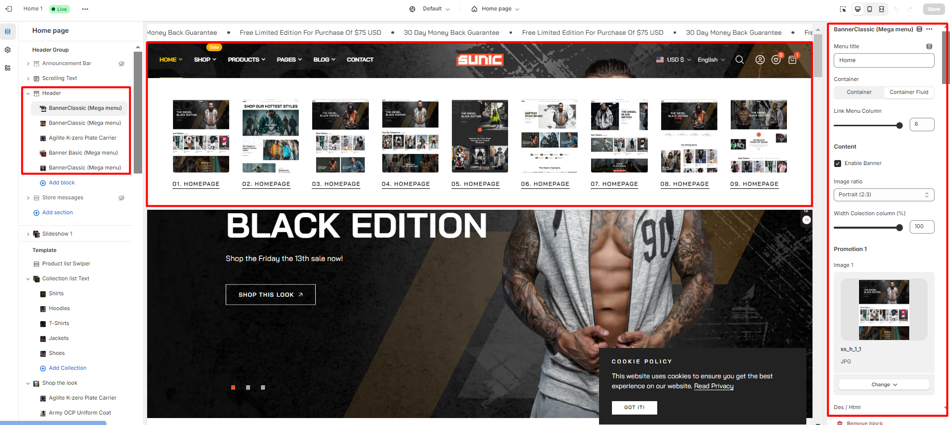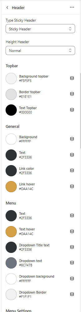In the theme editor **(Customize) => Section**, click **Header >** Scroll to **General**