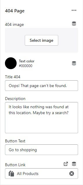 In **404 page** -> Click **404 page Section**