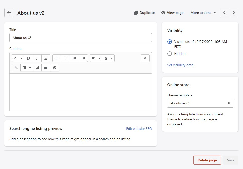 1. From your Shopify admin, go to **Online Store** **->** **Pages.**