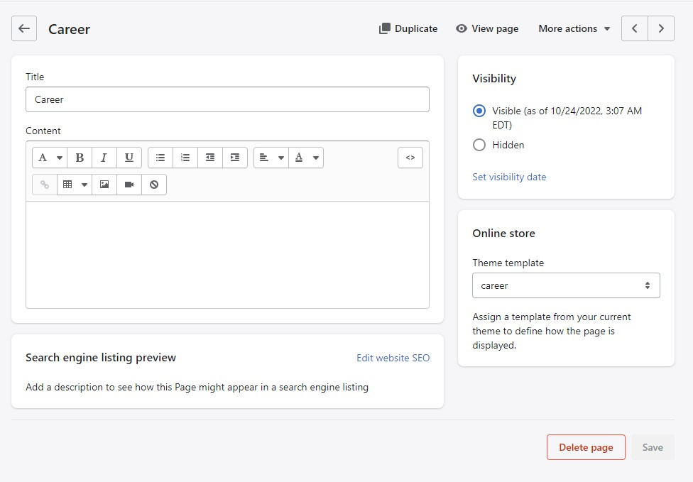 1. From your Shopify admin, go to **Online Store** **->** **Pages.**