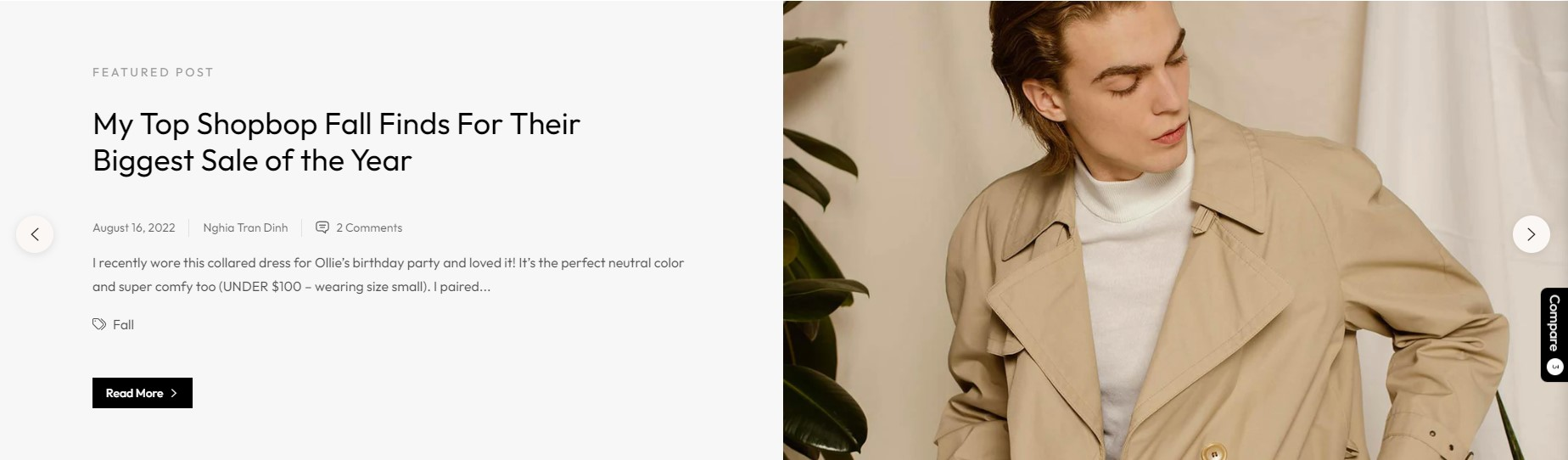 In the theme editor **(Customize) => Section**, Add **Featured blog posts**