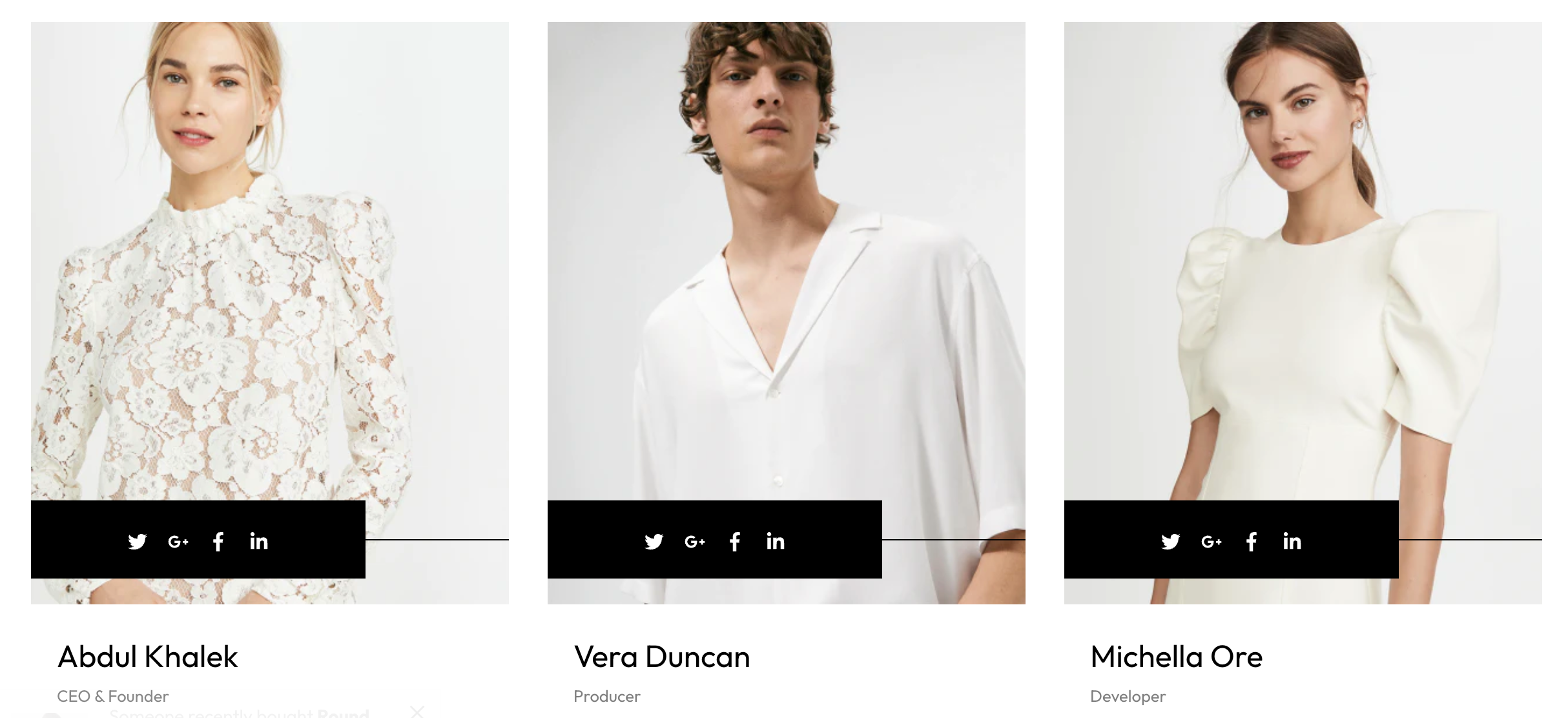 In the theme editor **(Customize) => Section**, Add **Team member**