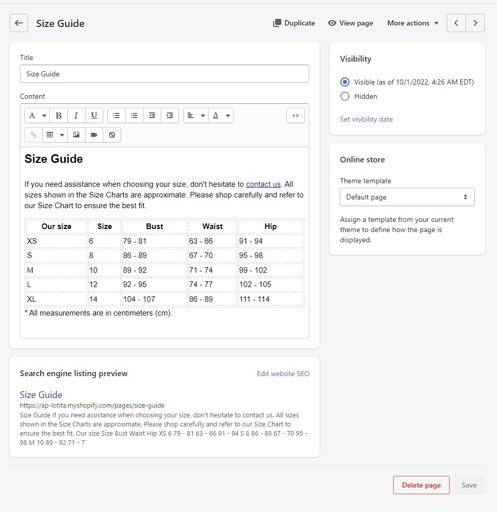 Enable Size Guide