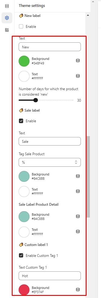 🏷️ Custom label 1 => If you want show this label, you need enter tag for each product Example: tag in product => "Hot" text in Custom label 1 => "Hot"